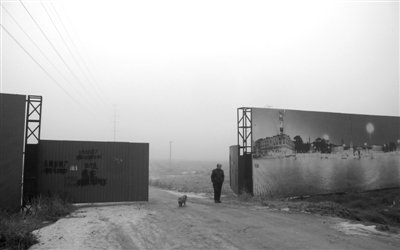 1月31日,河北霸州南孟镇南孟村,数百亩的荒地,围栏上是盛达公司的广告。新京报记者 李超 摄